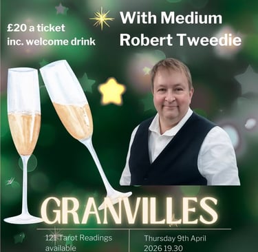 Join us on April 9th at Granvilles in Stone for an evening with medium Robert Tweedie, including a welcome drink and spiritual insights.